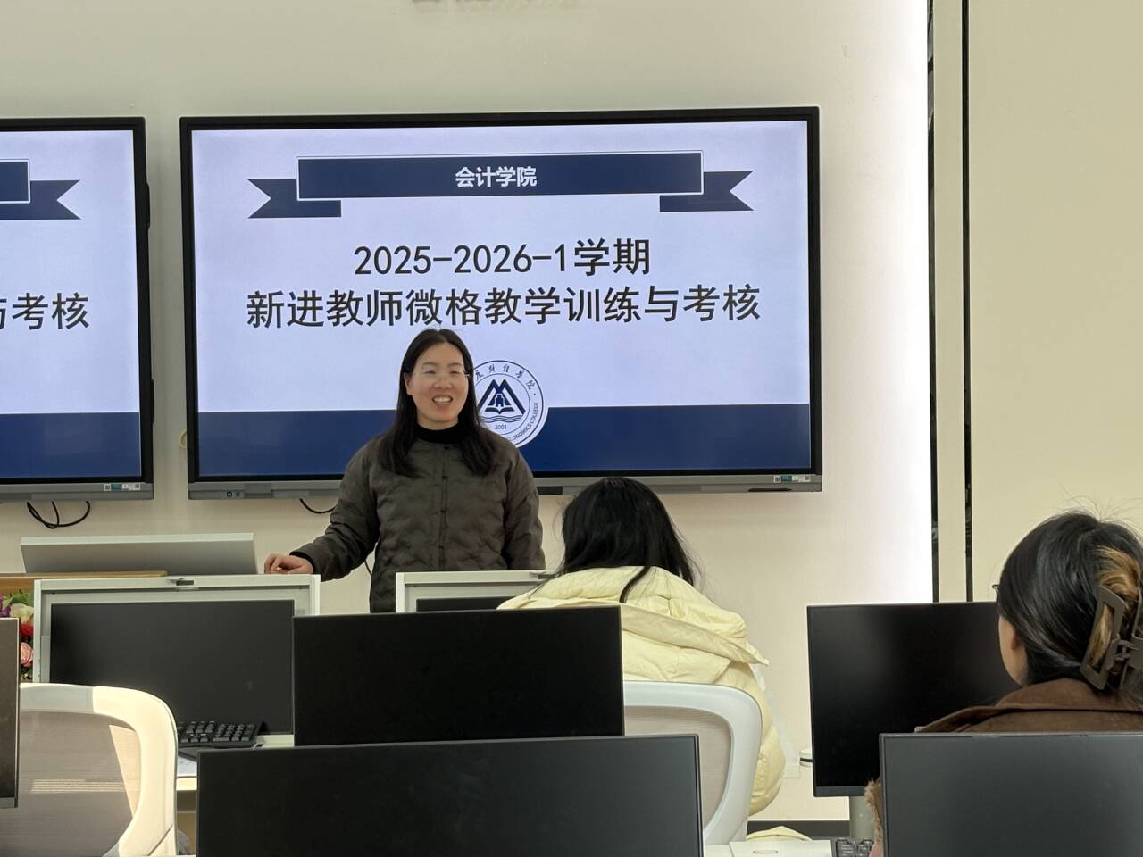 為夯實(shí)青年教師教學(xué)基本功,加速新教師角色轉(zhuǎn)變,打造高水平、專業(yè)化的師資梯隊(duì),2025年12月18日下午,會(huì)計(jì)學(xué)院在1206教室隆重舉辦了新教師微格教學(xué)訓(xùn)練營(yíng)。副校長(zhǎng)陳旭教授親臨現(xiàn)場(chǎng)指導(dǎo),會(huì)計(jì)學(xué)院副院長(zhǎng)王歡歡、專業(yè)負(fù)責(zé)人代表毛翠微、系主任代表唐蕾及院級(jí)督導(dǎo)代表石阿慧組成專家評(píng)委團(tuán),對(duì)學(xué)院6位新入職教師的教學(xué)能力進(jìn)行精準(zhǔn)把脈與悉心指導(dǎo)。
