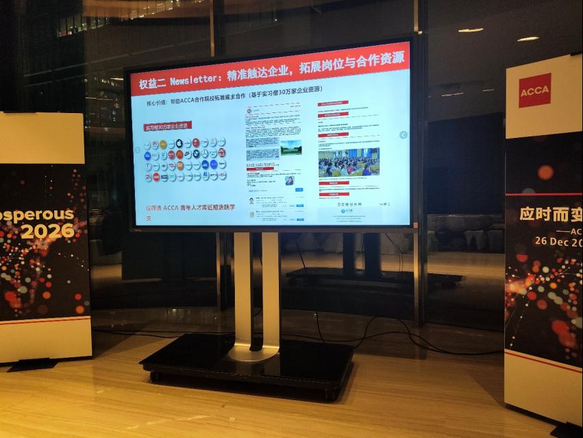 2025年12月26日晚,由ACCA(特許公認會計師公會)主辦的“應(yīng)時而變,育見未來——ACCA高校年度發(fā)展論壇”在成都尼依格羅酒店成功舉行。我院產(chǎn)業(yè)院長鮑曉敏作為特邀嘉賓出席本次盛會,與來自ACCA官方、全國多所合作高校的領(lǐng)導(dǎo)、專家及知名企業(yè)代表齊聚一堂,圍繞國際會計發(fā)展動態(tài)、高素質(zhì)人才培養(yǎng)與學(xué)生職業(yè)發(fā)展等核心議題展開深入研討,為學(xué)院未來發(fā)展汲取前沿智慧。